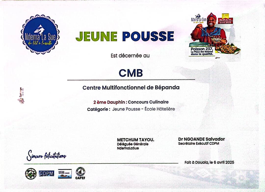 *Bis repetita pour les apprenants du Centre Multifonctionnel de Bépanda ( CMB), de nouveaux lauréats au concours culinaire jeunes pousses du festival NdemaLaSue acte 4*